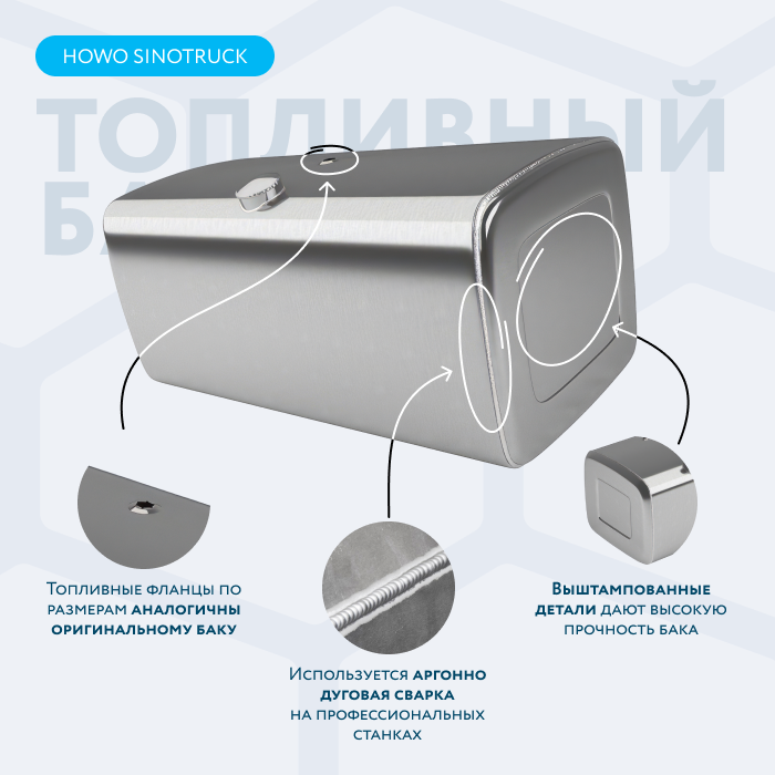Топливный бак (аналог WG760055050) производства БАКОР предназначен для установки на а/м HOWO Sinotruck.