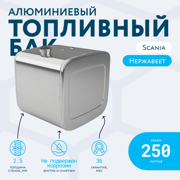 Алюминиевый бак не подвержен коррозии, что делает его более долговечным, а так же сбережет вашу топливную систему. Бак из алюминия в два раза легче стального бака, хотя он и изготовлен из листа увеличенной толщины в 2,5 мм. В конструкции предусмотрены цельные перегородки, которые проварены по периметру. Баки из алюминия так же оснащены заливной горловиной с самозапираемым непроливаемым клапаном (который становится барьером для разлива топлива, а так же становится защитой от попадания мусора в бак при открытой крышке) . Кроме того, однозначно что алюминиевый бак выглядит намного привлекательнее и дороже - где бак в том числе становиться и элементом тюнинга автомобиля. На алюминиеввые баки действует увеличенная гарантия - 36 месяцев.