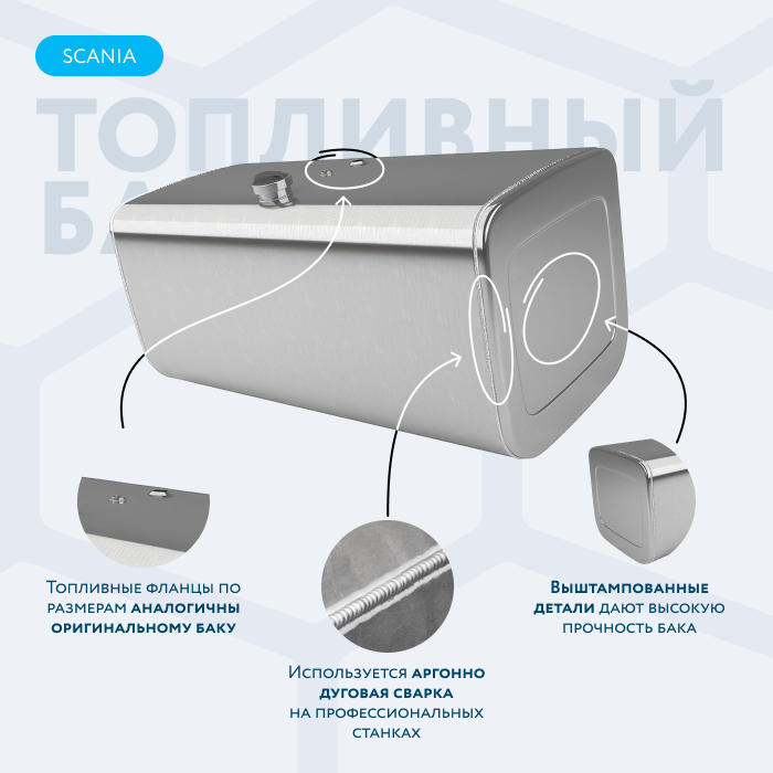 Алюминиевый бак не подвержен коррозии, что делает его более долговечным, а так же сбережет вашу топливную систему. Бак из алюминия в два раза легче стального бака, хотя он и изготовлен из листа увеличенной толщины в 2,5 мм. В конструкции предусмотрены цельные перегородки, которые проварены по периметру. Баки из алюминия так же оснащены заливной горловиной с самозапираемым непроливаемым клапаном (который становится барьером для разлива топлива, а так же становится защитой от попадания мусора в бак при открытой крышке) . Кроме того, однозначно что алюминиевый бак выглядит намного привлекательнее и дороже - где бак в том числе становиться и элементом тюнинга автомобиля. На алюминиеввые баки действует увеличенная гарантия - 36 месяцев.